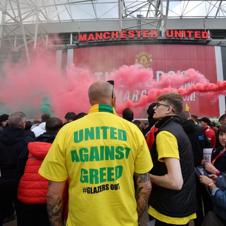 唯笑的猫专栏如果你对去年五月份的那场双红会还有印象,想必不会忘记这样的一幅场景——原定于5月2日的比赛开始前,数百名愤怒的曼联球迷涌入老特拉福德球场,他们穿戴着金绿相间配色的衣物、围巾,挥舞着手中的烟雾,向刚刚宣布加入欧超联赛的俱乐部表示强烈不满。