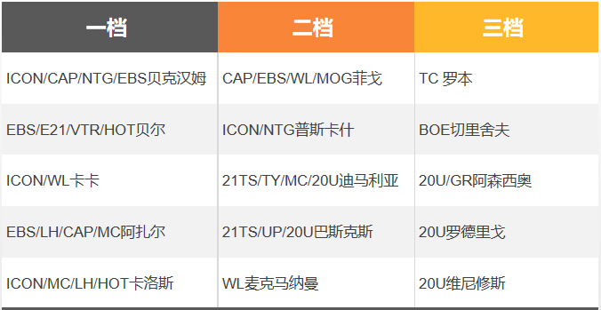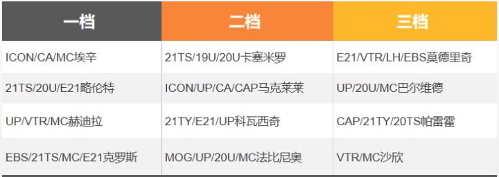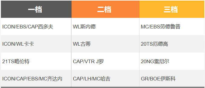 注:以下的推荐中,“CA”代表新出的切尔西大使赛季(Chelsea Ambassador);由于目前球员的赛季卡种繁杂,全部罗列会增加选择难度,所以这里挑选了一些重点的赛季作为推荐,不在列表中的球员和赛季,需要的朋友自行入手即可。