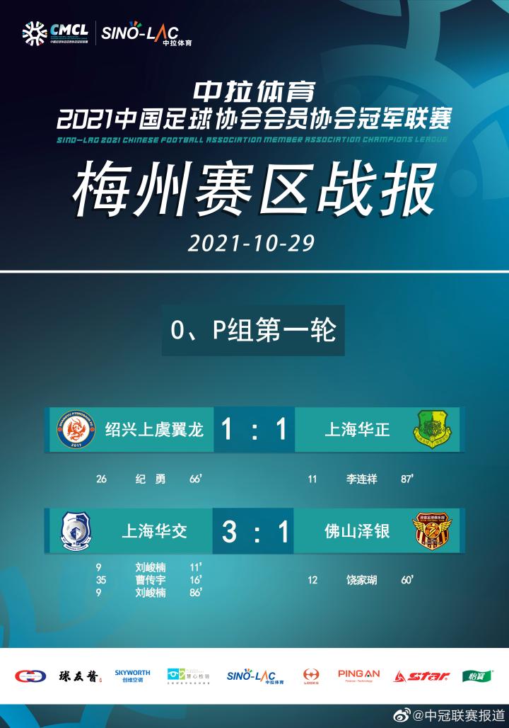10月29日,在2021赛季中冠联赛大区赛广东梅州赛区P组小组赛首轮中,豪阵出征的上海华交,凭借上海申花旧将刘峻楠、曹传宇攻入的3个进球,以3-1战胜佛山泽银,获得开门红,在冲击中乙征程上,迈出了坚实的一步。