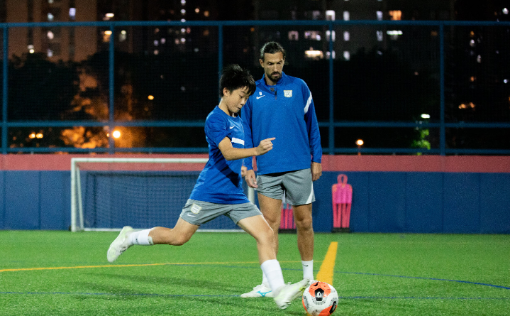 这晚的U14分成进攻组和防守组两班,德扬指导一众少年射手进行各种练习:“他们表现令我联想起自己小时候,第一次与球会内一队球员接触,那时我跟他们一样带着一点点紧张和害羞。但每一句说话、每一下动作我也记在心里。这是我第一次与香港青少年球员训练,他们细心地聆听我讲解,完成了整课,如未来有这样的机会,我亦十分乐意协助。”