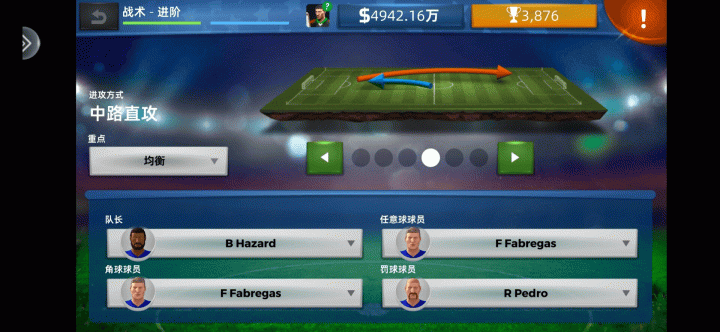 玩家需要熟悉各球员属性,并制定针对性的打法,如中路直攻,长传或者边路进攻等,最大化的发挥球队实力。
