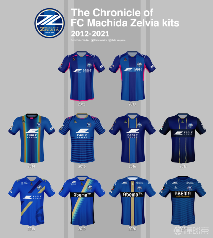 日本俱乐部町田泽维亚近10年主场球衣一览。