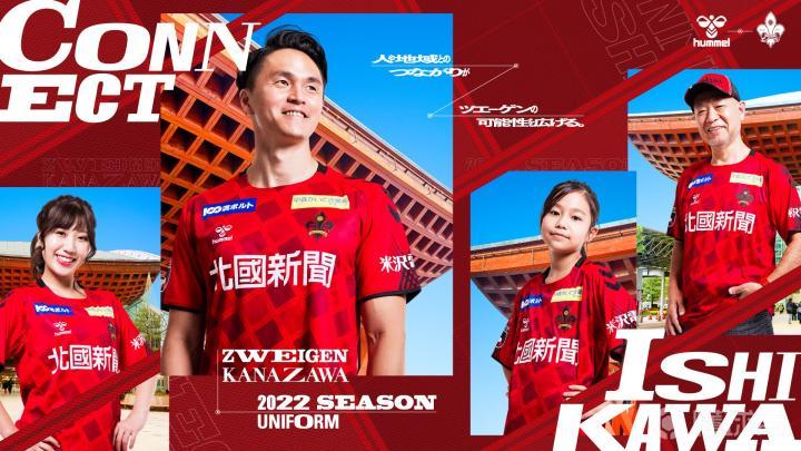 日本J2球队金泽萨维根发布2022全新主客场球衣。