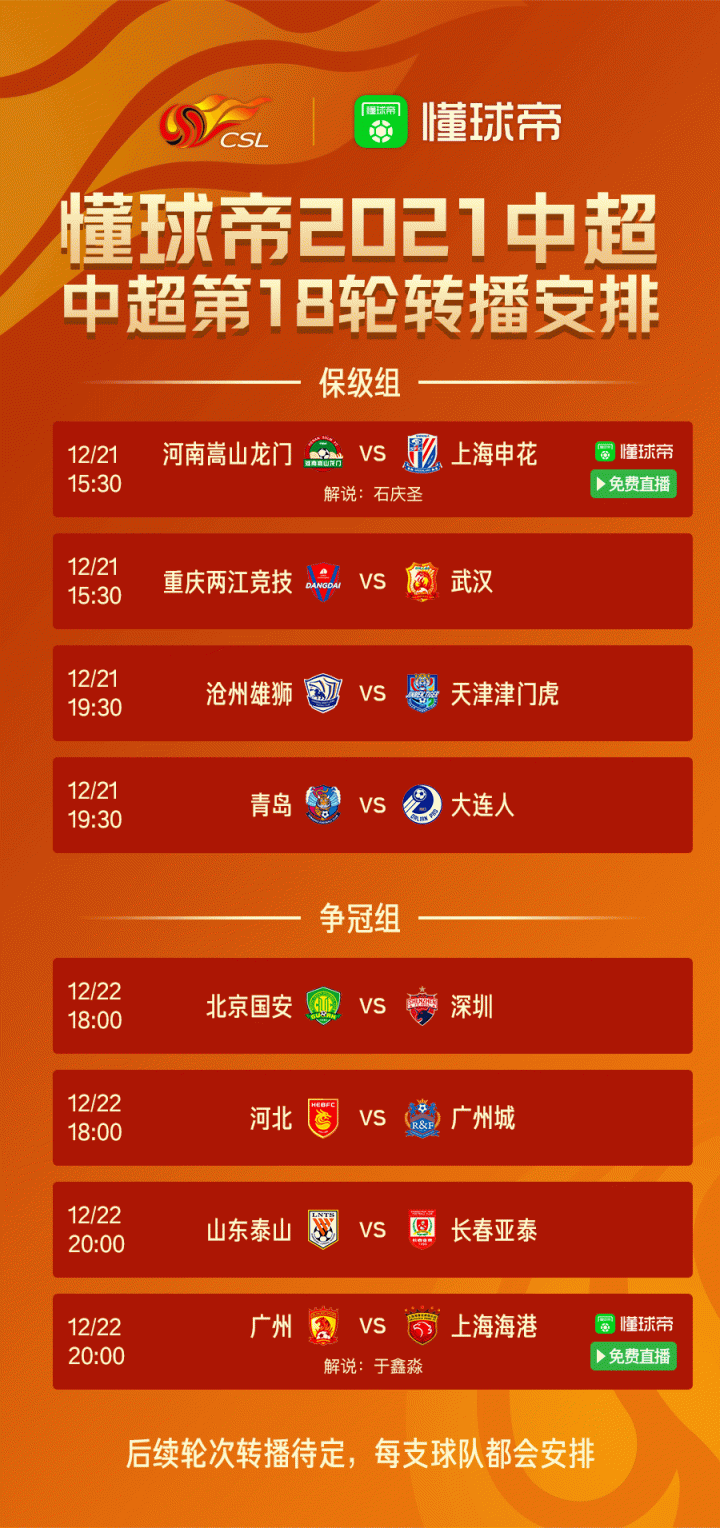 懂球帝2021中超第18轮转播安排出炉!我懂将为...懂球帝直播君 @懂球帝2021-12-20 19:21懂球帝2021中超第18轮转播安排出炉!我懂将为大家送上河南嵩山龙门vs上海申花、广州vs上海海港两场比赛的转播,欢迎大家关注!展开更多
