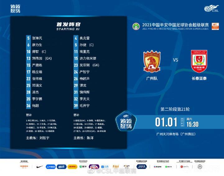 长春亚泰主教练陈洋安排双外援埃里克、奥克雷同时首发,孙捷担任场上队长,门将是吴亚珂,其他位置还有:谭龙、杨超声、饶伟辉、李光文、毛开宇、严智宇、迪力依米提。目前领跑射手榜的外援儒尼奥尔,出现在替补席上。替补席还有张瑀、程长城、陈柏良、惠家康、石笑天等人。