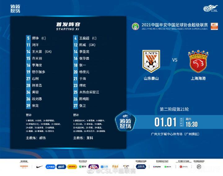 1月1日,2022年第一天,跨年进行的2021赛季中超联赛第21轮即倒数第2轮广州赛区争冠组,先赛2场。结果,经过90分钟激战,山东泰山2-2与上海海港握手言和,广州队则再次以2-0击败长春亚泰。这样,在山东泰山已经锁定冠军的情形下,广州队就占据了争夺亚军的主动权。