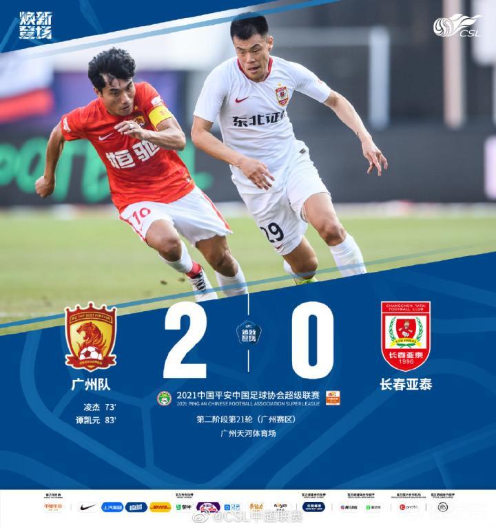 最终,广州队2-0击败长春亚泰,再次以同样的比分击败对手。
