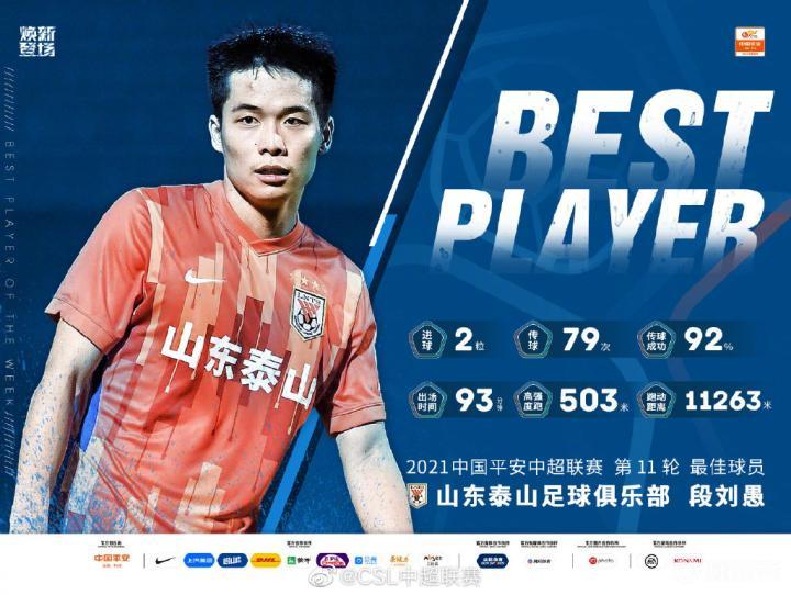比赛中,山东泰山的开局最顺利。第8分钟,段刘愚就在接到队友刘洋精准助攻之后,推射破门,领先上海海港。这也是2场比赛在上半场的唯一进球。