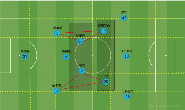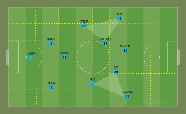 (图)曼城边后卫内收常规战术示意图 l 取自tactical-board