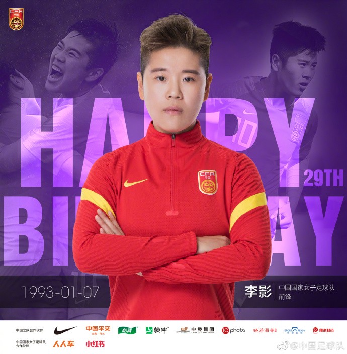 北京时间1月7日,女足国脚李影迎来了自己29岁的生日,中国足球队官微发布海报为她庆生。