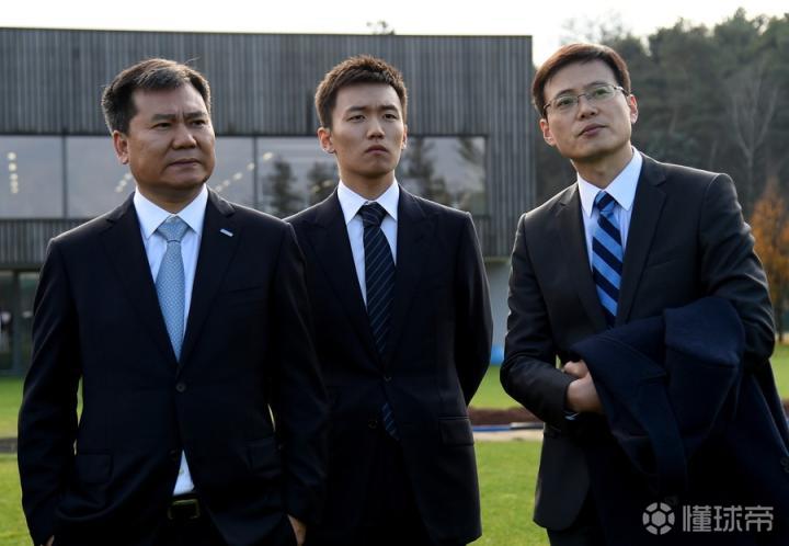 11月28日,苏宁集团董事长张近东携张康阳探访国米训练,父子与球队主帅皮奥利合影。