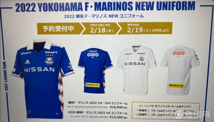 横滨水手2022新赛季主客场球衣,球衣设计致敬9...