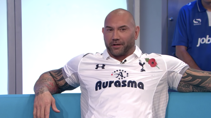 在漫威电影《银河护卫队》中饰演“毁灭者德拉克斯”和最近上映的电影《沙丘》中饰演“野兽拉班”一角,成为好莱坞著名演员的职业摔跤手兼电影演员戴夫·巴蒂斯塔以托特纳姆热刺的粉丝而闻名。