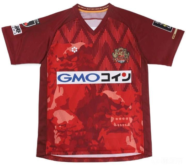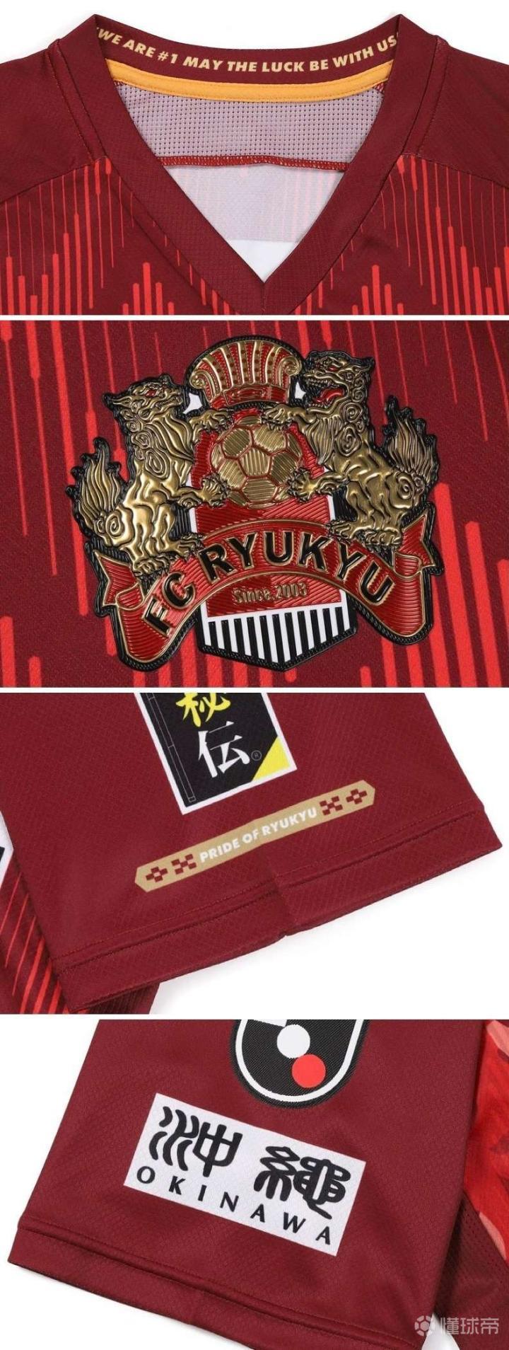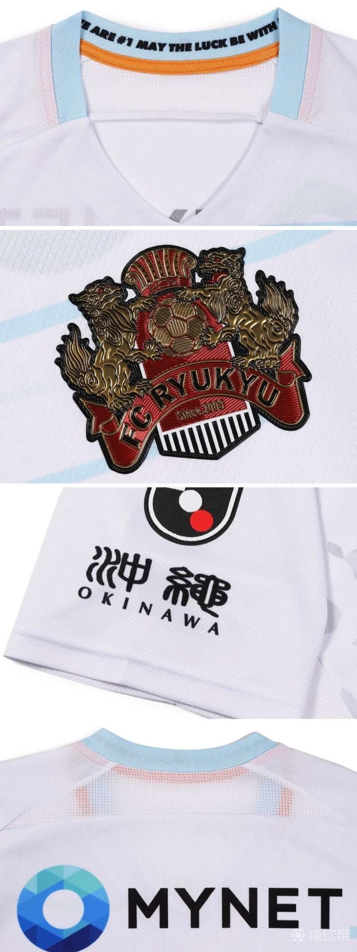 J联赛球衣琉球FC(FC Ryukyu) 2022赛季SFIDA主客场新球衣发布 设计:新球衣延续了2021赛季Sfida的设计理念「OPEN THE NEW GATE」,主场球衣以传统的琉球红色为基调,衣身前后是由渐变竖条组成的连续上升箭头,代表常胜不败,正面是琉球的象征和守护神“琉球对狮「シーサー」”的剪影,客场球衣以白色为基调,正面浅灰色的琉球对狮剪影,衣身前后搭配天蓝色的对称渐变横条,象征冲绳美丽的碧海蓝天。 细节:一直印在后领的Pride of Ryukyu这次换到了左袖袖口,旁边是古琉球王国流传下来的传统纹样「ミンサー」,球衣后领内侧印着“We Are #1 May The Luck Be With Us”为球队打气的口号,冲绳旧体汉字和英文表记继续出现在右袖J联赛臂章下方。