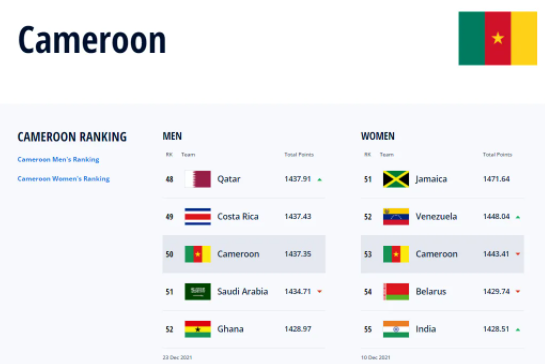 目前,喀麦隆的FIFA世界排名为世界第50名,他们曾经高居世界第11,但近年来并没有涌现出以往那样过多优秀的球员,导致实力在一定程度下有所下滑。非洲雄狮期待着东山再起。