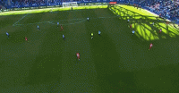 (图)利用一到两脚直传就把球从中场打到禁区附近,塞维利亚在阵地战中非常注重提速。本赛季对阵西班牙人,塞维利亚连续利用边路传中制造杀机。