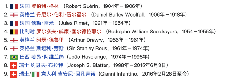 二十世纪初足球在全世界的流行催生了国际足联。国际足联在1904年5月21日成立于法国巴黎圣奥雷诺街229号,名称为Fédération Internationale de Football Association,简称FIFA。创始会员有法国、比利时、丹麦、荷兰、瑞典、瑞士的足球协会和马德里足球俱乐部(代表西班牙,而西班牙皇家足球联合总会到1913年才成立)。德国也在当天发电报表示要加入。
