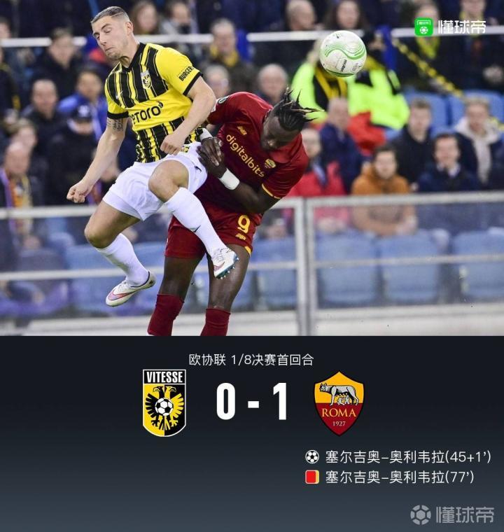 【欧协杯罗马1-0客胜维特斯,塞尔吉奥-奥利韦拉破门+染红】
