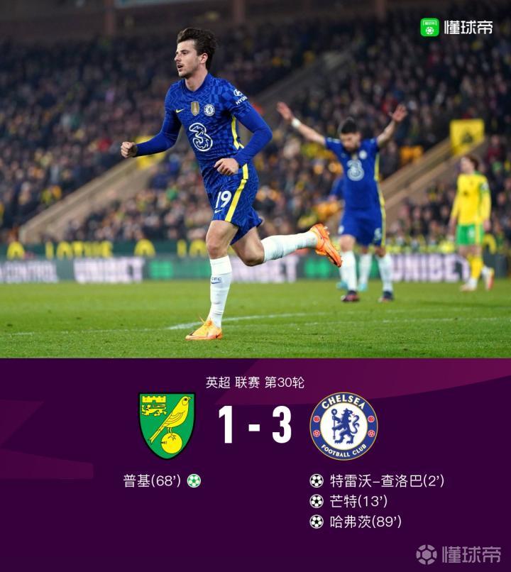 【剑南春丨英超战报:切尔西3-1诺维奇,芒特、哈弗茨传射建功】