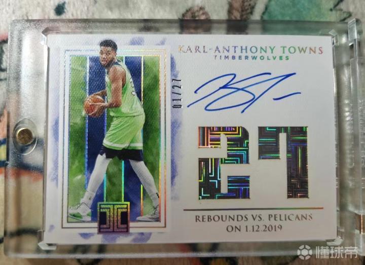能记录球员数据的不只有新闻,书本,球星卡也能记录球星的高光时刻!比如说Impeccable(小真金)系列的数据签,新的一年就将会更新唐斯单场60分的卡种啦,让我们一起期待!下面是唐斯单场27篮板的数据签以及球衣背号签,给大家一起欣赏!