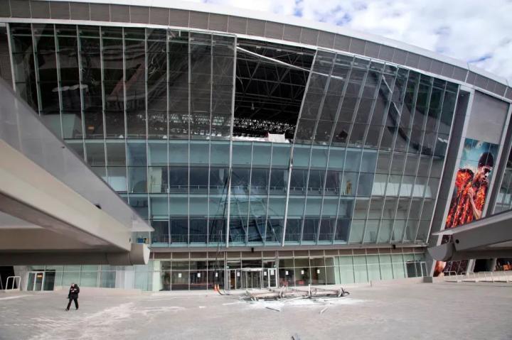 2014年8月,一枚炮弹将球场外的玻璃幕墙炸得粉碎;10月,又有一发炮弹击中体育场,造成顶棚玻璃板脱落。