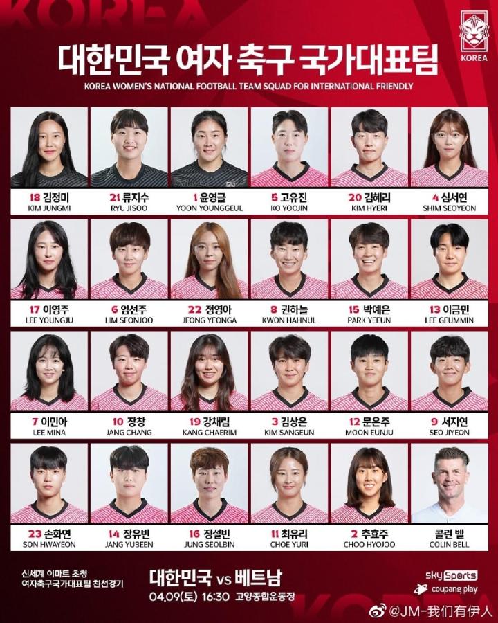 为备战2023年澳大利亚和新西兰女足世界杯,北京...凌波薇笑 @懂球帝2022-04-09 08:50为备战2023年澳大利亚和新西兰女足世界杯,北京时间4月9日15:30,韩国女足将与越南女足在高阳综合运动场进行一场热身赛。赛前,韩国女足公布了大名单以及球员球衣号码。其中,李玟娥身穿7号球衣,崔有利身披11号战袍,李永周则身着17号球衣。展开更多