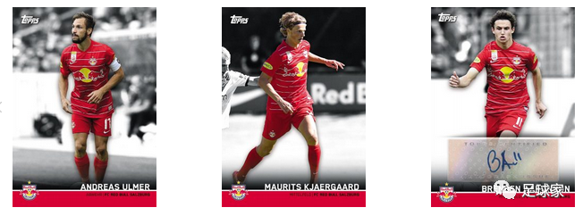 Topps萨尔茨堡红牛队盒的签字卡一共有16张,主要博点有:乌尔默、贝内德、阿伦森、阿达穆、阿德耶米、苏契奇、凯尔高、克里斯滕森等球员。
