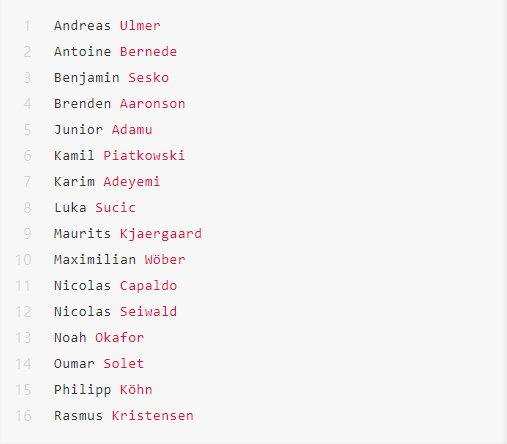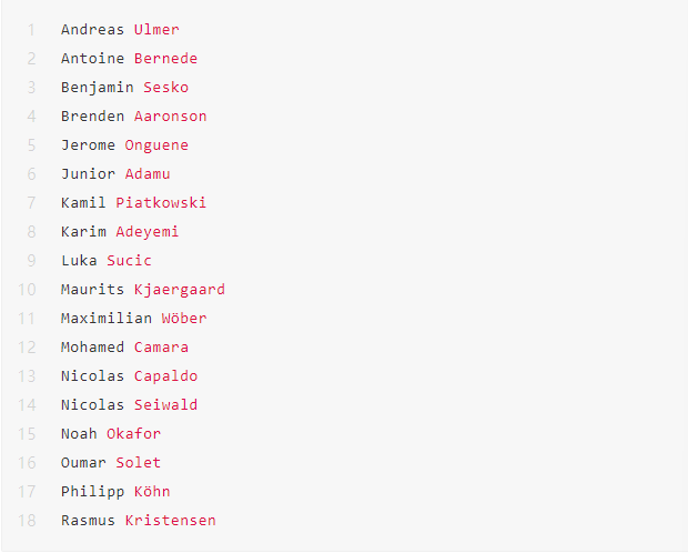 Topps萨尔茨堡红牛队盒的球星卡一共有18张,主要博点有:阿德耶米、奥卡福尔、谢什科、阿达穆、阿伦森、卡帕尔多、苏契奇、凯尔高、赛尔瓦德、卡马拉、贝内德、克里斯滕森、翁奎内、乌尔默、库恩等。
