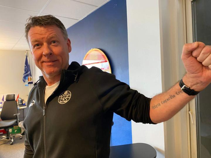 说回德拉门,比约恩·弗尔海姆(Bjorn Furuheim)过来展示他的阿森纳纹身。他拉起一条裤腿,露出小腿上的纹身。同时,他的左臂上还刻着古老的座右铭,Victoria Concordia Crescit。