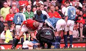 2001年4月,在与曼联的比赛中,老哈兰德遭到了罗伊·基恩的飞铲,右膝严重受伤,这次受伤直接影响了他的整个职业生涯。