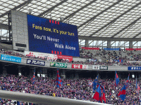 可能关注东京的朋友会略有耳闻,东京的主场助威歌也是《you will never walk alone》不过因为政府的规定,所以大家只能听不能唱。