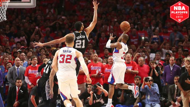 G6保罗失准仍送出15次助攻,格里芬再得26分12个篮板6次助攻4次盖帽,快船趁莱昂纳德和帕克失准之际,以102-96扳平。抢七战造就了保罗的传奇,他在最后时刻面对维克森林学长邓肯的封堵,完成打板绝杀,率队以111-109逆转晋级。