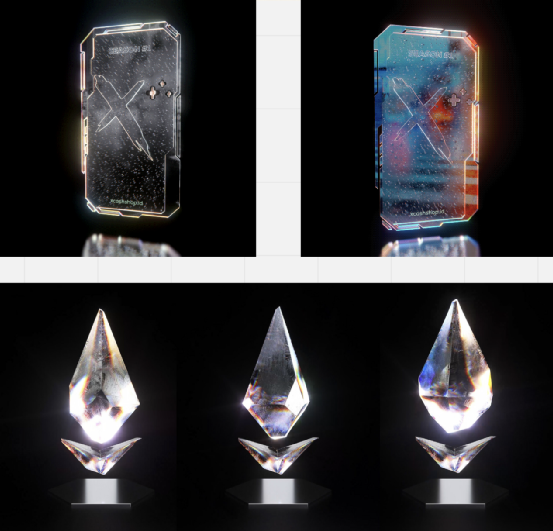 结合稀世臻选的主题,我们对于本系列球员卡的设计想凸显珍贵与稀有的特点,所以采用数字与钻石水晶的质感结合,将数字镶嵌至钻石水晶中,使两者融合,体现现代化工艺的轻薄质感与通透,同时运用钻石水晶在阳光下的光泽颜色并加以夸张表现手法,突出数字号码的高贵身份。