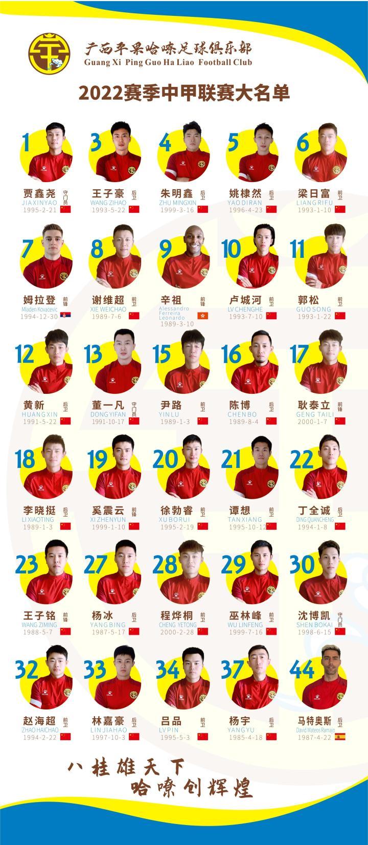 新起点,新征程,2022新赛季开启在即,广西平果哈嘹足球俱乐部在新援引进工作结束后,确定了征战2022赛季中甲联赛的大名单,本赛季共报名30位球员。