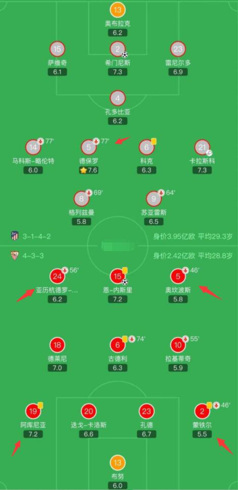 这场比赛,最令阿根廷球迷兴奋的是,场上双方首发居然有5名阿根廷国脚,分别是马竞的德保罗,塞维利亚的奥坎波斯、戈麦斯、阿库尼亚和蒙铁尔,马竞的另1名阿根廷国脚安赫尔-科雷亚在下半场替补上场(换下格子)。赛后,马竞的德保罗因在攻防两端表现出色,被评为全场最高分+全场最佳球员。
