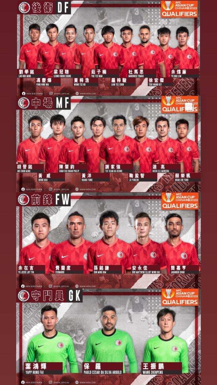 中国香港25人海外集训名单:叶鸿辉、徐宏杰、谢家强在列