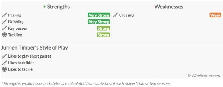 (图:数据网站给出的廷贝尔个人优劣势分析)