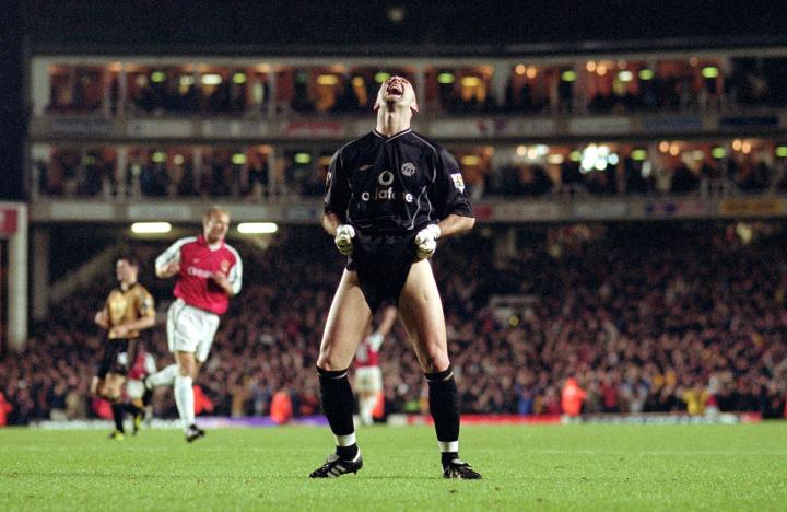 曼联门将法比安·巴特兹在海布里球场意外失误给阿森纳送大礼后十分懊恼。2001年11月25日。摄影师:Mark Leech