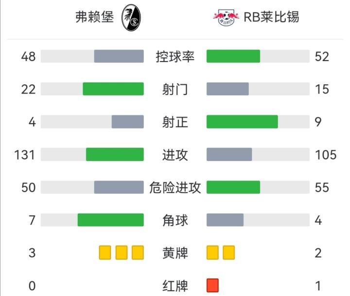 第56分钟,哈尔斯滕贝格利用犯规破坏霍勒准单刀被直红罚下,莱比锡雪上加霜少一人作战!