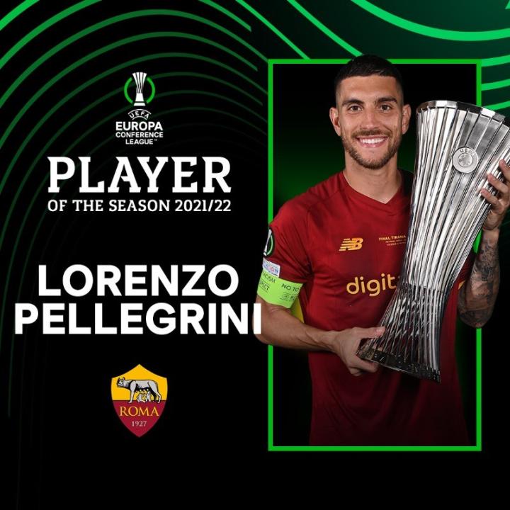 官方:罗马队长佩莱格里尼当选欧协联赛季最佳球员ETChalmers2022-05-27 22:58官方消息,罗马中场洛伦佐-佩莱格里尼当选欧协联赛季最佳球员。本赛季欧协联,佩莱格里尼代表罗马在正赛出场10次,完成22次射门,队内仅少于亚伯拉罕,打入4球,送出2次助攻,帮助罗马最终夺得欧协联冠军。最终经过评选,这位罗马队长当选2021-22赛季欧协联最佳球员。展开更多