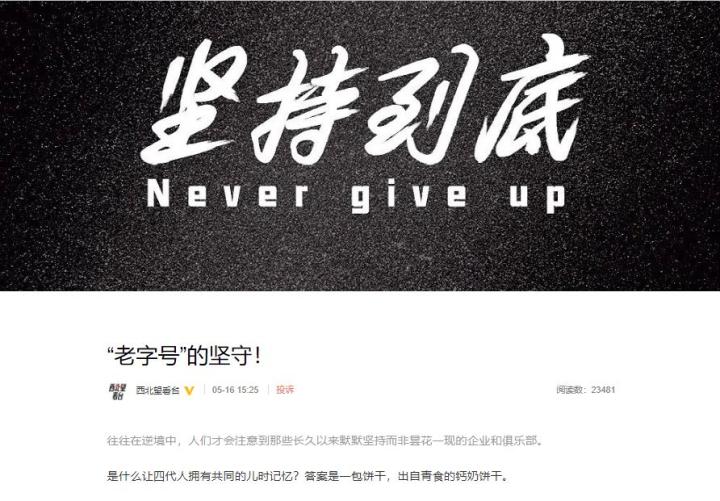 5月中旬,青岛食品股份有限公司与青岛海牛足球俱乐部正式达成战略合作,双方正式共同奔赴十年之约,助力青岛足球。双方合作的新闻在全国范围内引起了广泛关注,社会各界纷纷讨论这段跨界的”姻缘“,国内十余家媒体、自媒体平台纷纷报道,点击量更是达到了数十万。其中一篇来自新浪微博“西北望看台”的文章《“老字号”的坚守!》在足球圈引发共鸣,特别是联赛开始前的各支赞助商阵容PK中,青食饼干成为"网红"。