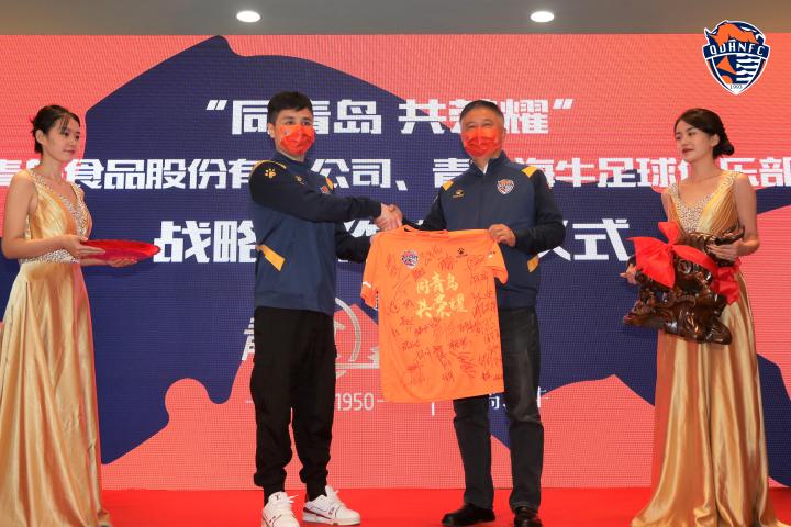 2022新赛季,海牛队将身披带有“青岛食品”的战袍征战赛场,这是双方企业友谊的传承和延续,是双方共同担当社会责任、助力青岛足球事业的体现,亦是两家老字号企业共同将“同青岛共荣耀”的理念书写传承下去的见证。