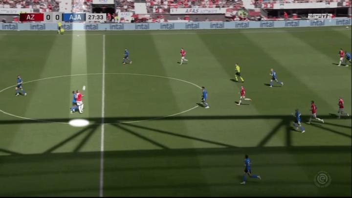 20岁的廷贝尔完成了一次精彩的进球,通过时机完美的抢断和自信的带球把坎布尔的一次五打四变成了阿贾克斯的五打三。最后还用一粒进球展现了自己全方位的能力。