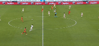 第35分钟,德容送出过顶传球,贝尔温接球后形成一脚射门。