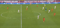伤停补时阶段,德容传球,德佩直接尝试半场吊门,皮球高出。