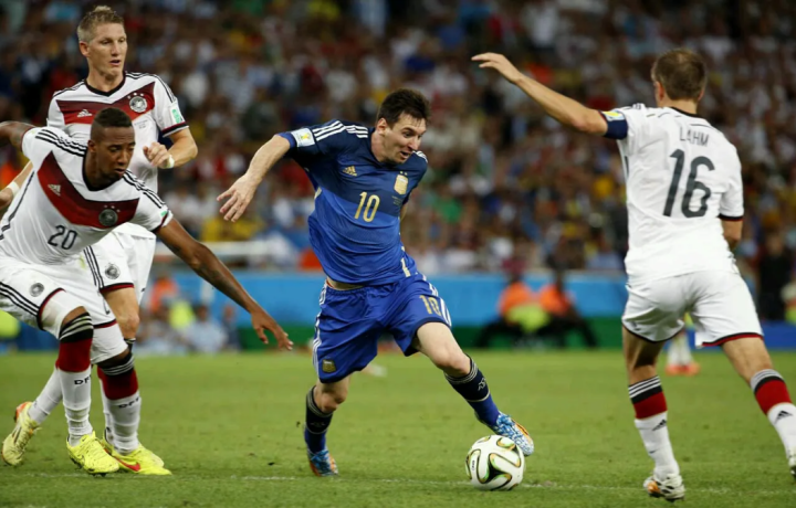 决赛中,梅西打偏了单刀球,任意球机会也没把握住,在德国队的严防死守,以及之前连续两场拼到加时赛的消耗下,严重影响了他的状态。可是梅西没有放弃,他拼尽全力战斗到了最后一刻,你瞧: