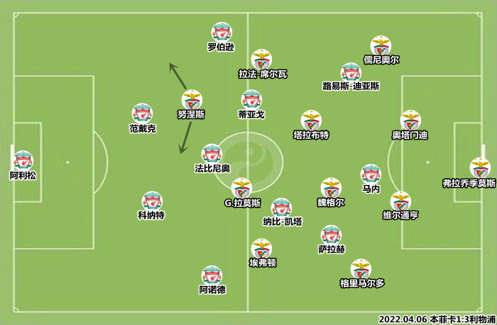 首回合坐镇光明球场,本菲卡主打4231阵型,达尔文-努涅斯突前,在其身后的是葡超“穆勒”G-拉莫斯,拉法-席尔瓦和埃弗顿组成两翼。