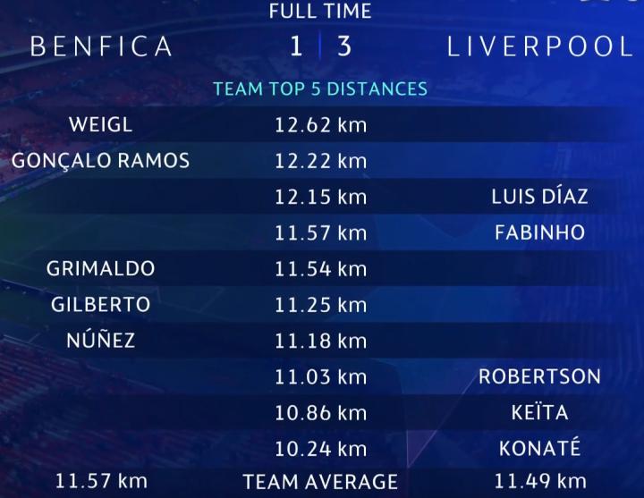 身高1米87,体重91公斤,“巨人”身形并没有限制努涅斯的跑动能力,面对利物浦两战都刷出了近11公里的跑动距离,跑动能力不逊于红军现有前锋。