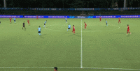 当上半场临近结束时,商隐通过积极的跑动抢下球权,推进到前场并制造了一次前场定位球时,谢晖为他送上了掌声: