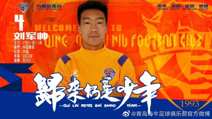 比赛开始后,青岛海牛逐步占据主动权。开场仅4分钟,新赛季从山东泰山租借加盟的刘军帅,就利用定位球,争点成功,头球破门,帮助球队取得梦幻开局,这也是刘军帅加盟青岛海牛后攻入的首球,他再次诠释了“带刀后卫”的身份标签。